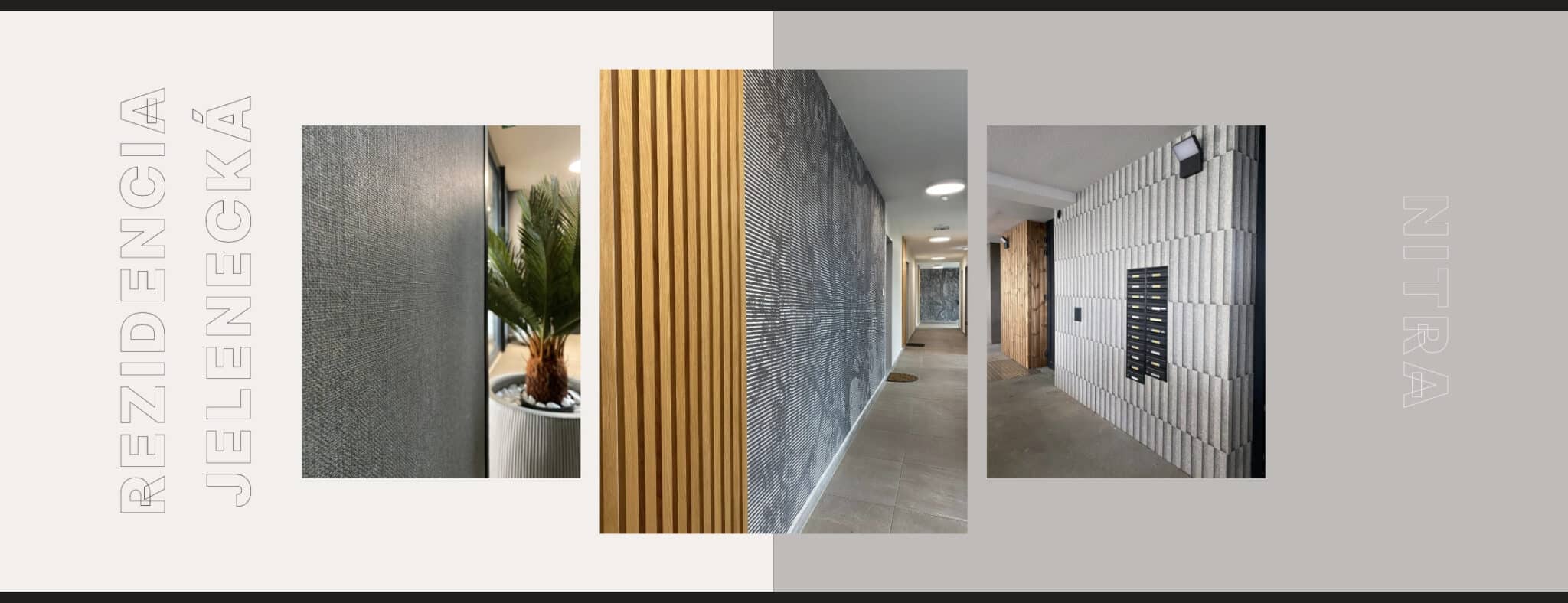 Predstavujeme vám našu realizáciu outdoorových tapiet v unikátnom rezidenčnom projekte Jelenecká v Nitre. Použité boli vysoko-odolné tapety s dizajnom tehál a stromov renomovanej značky Wall & Decò (wp1901, ns1801), ktoré sú vhodné do exteriéru. Inštalované boli vo vonkajších priestoroch na steny v okolí vchodových dverí. Rovnaké tapety sme použili aj v interiéri na chodbách a schodisku.